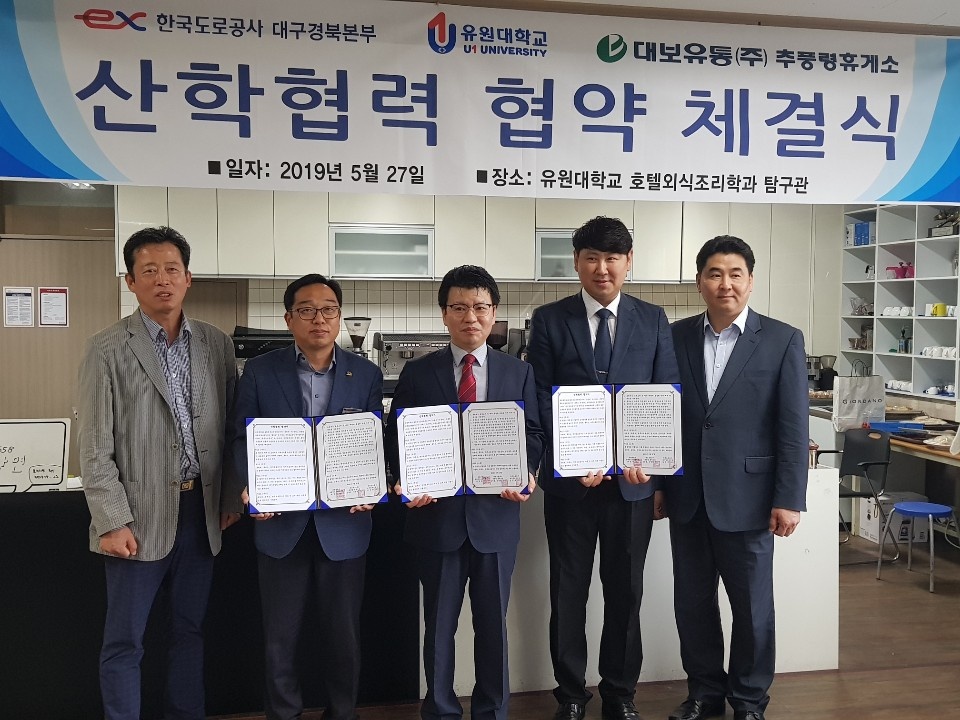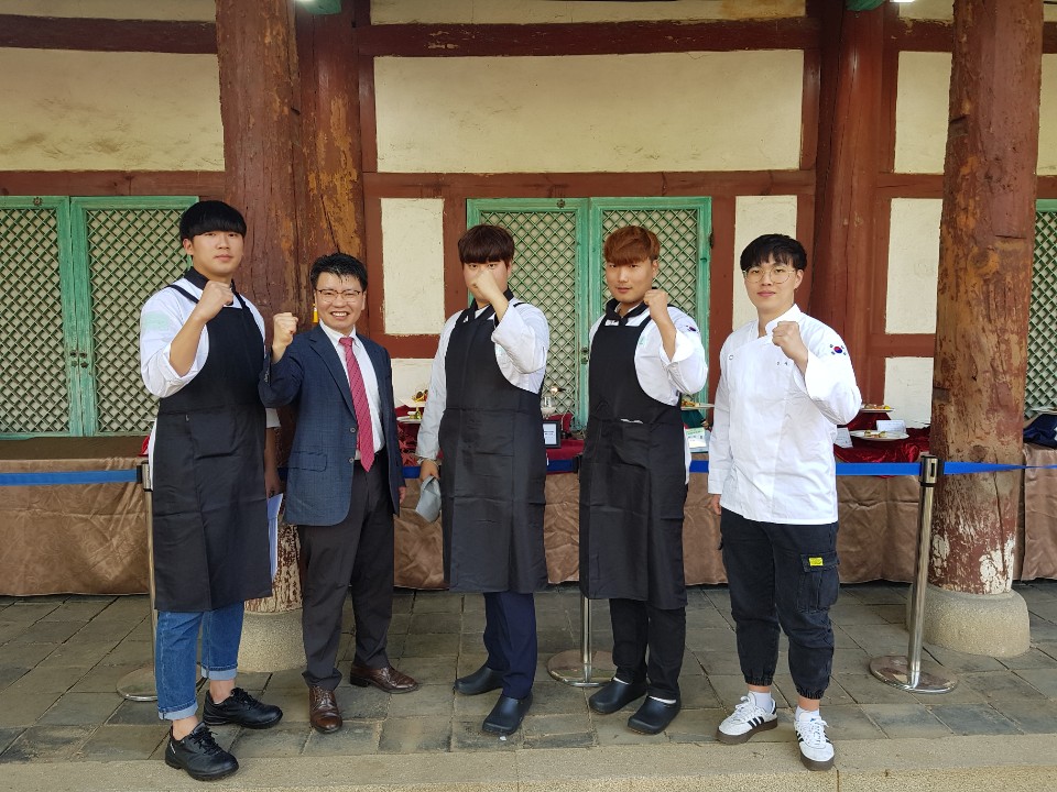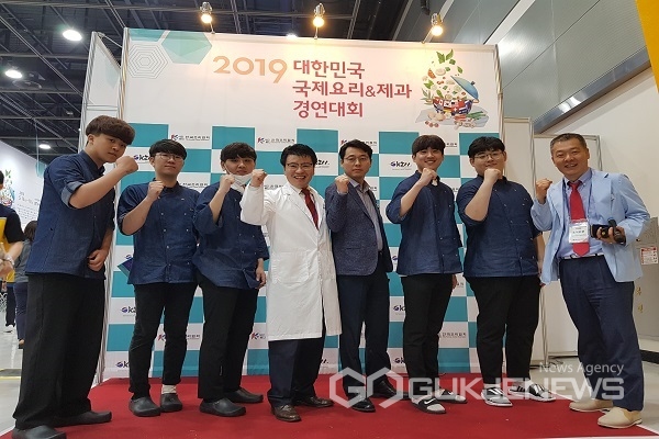 유원대학교(총장 채훈관) 호텔외식조리학과 학생들이 2019년 5월 16일~19일 서울 양재동 AT센터 제2전시장에서 개최된 '2019 국제요리&제과 경연대회' 3코스 라이브 경연 및 전시 부문에서 전원 금상과 대회장상인 우수상을 수상하는 쾌거를 이뤘다. 국제요리 라이브 경연에서 'Chef Master 팀'(팀장 오철년, 4학년 임성희, 이시우, 2학년 곽진성, 함승진)은 영동한우 웰링턴 메인 요리를 선보여 미슐랭 스타급 미식의 진수를 보여줬다. 올랑데즈 소스와 전복, 새우 베네딕트, 엽록소 소스와 영동한우 비프웰링턴, 얼그레이 초콜릿 무스로 구성된 3코스 메뉴로 경쟁하여 대학부 금상과 대회장상인 우수상을 수상하는 결과를 이뤘다. 이번 대회는 전국 고등부, 대학부, 일반부에 5000여 명이 참가하는 글로벌 규모의 조리대회로 농림축산식품부, 교육부, 행정안전부, 보건복지부, 해양수산부, 통일부, 환경부, 고용노동부, 중소벤처기업부, 서울특별시, 식품의약품안전처, 농촌진흥청, aT한국농수산식품유통공사, 수협, 한국산업인력공단 등 정부 부처 등 27개 유관단체가 후원하고 중국, 일본 등 여러 국가가 참가하는 국제요리대회이다. 이번 대회에서 지역의 특산물을 활용한 작품들은 지역사회의 우수 농산물을 홍보하는 효과도 누릴 수 있었는데 충북 영동지역 한우 안심과 호두, 곳감, 포도를 활용한 영동과일과 영동와인 등을 이용한 한우의 숙성기법을 개발하여 부드럽고 감칠맛이 풍부한 스테이크를 선보여 실용적인 메뉴로 큰 반응을 얻었다. 이번 대회를 지도한 허영욱 교수(호텔외식조리학과 학과장)는 "매년 각종 요리 대회에서 최고의 성적을 거두게 된 것은 유원대학교의 특화 프로그램인 비교과 활동 지원과 학과의 스타세프 양성 교육의 결과"라며, 대회를 50여 일간 준비하고 연습하면서 매일 새벽까지 쉬지 않고 메뉴 작품에 온 열정을 쏟았던 학생들과 조리학과 교수진의 헌신이 있기에 가능하였다고 소회를 밝혔다. 유원대학교 호텔외식조리학과는 각종 조리대회 참가 및 전공 박람회를 통해 학과의 시그니처와 특화된 조리직 공무원 양성 프로그램으로 전국 최고의 취업률과 창의적 교육과정으로 워라벨 테마의 미래 외식 및 조리업계를 선도하는 인재를 양성하고 있다.