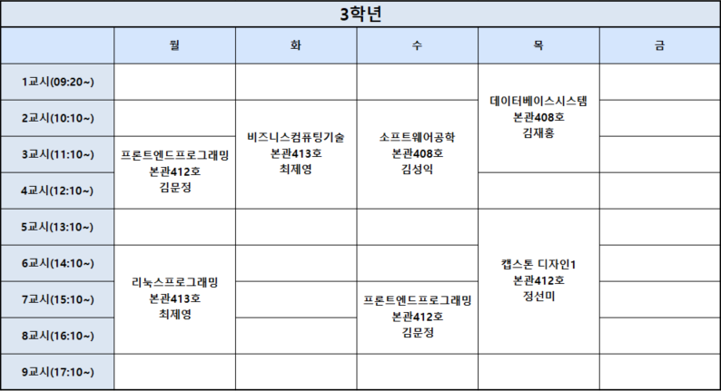 2026-1학기 3학년 시간표