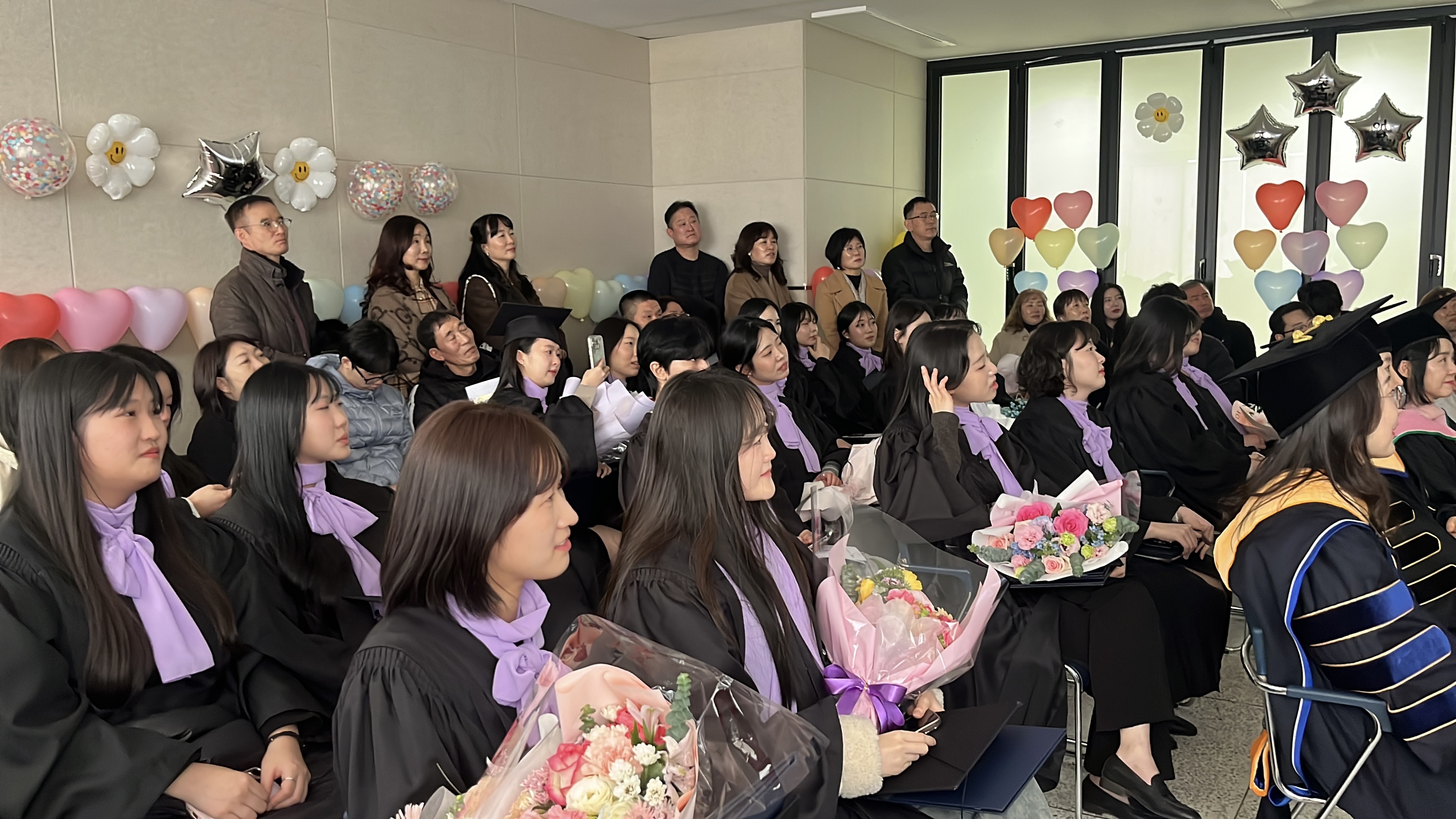 졸업식에는 졸업생과 함께 학부모님, 2,3학년 재학생과 학과 교수진이 참여하여 졸업생들을 축하하였습니다.