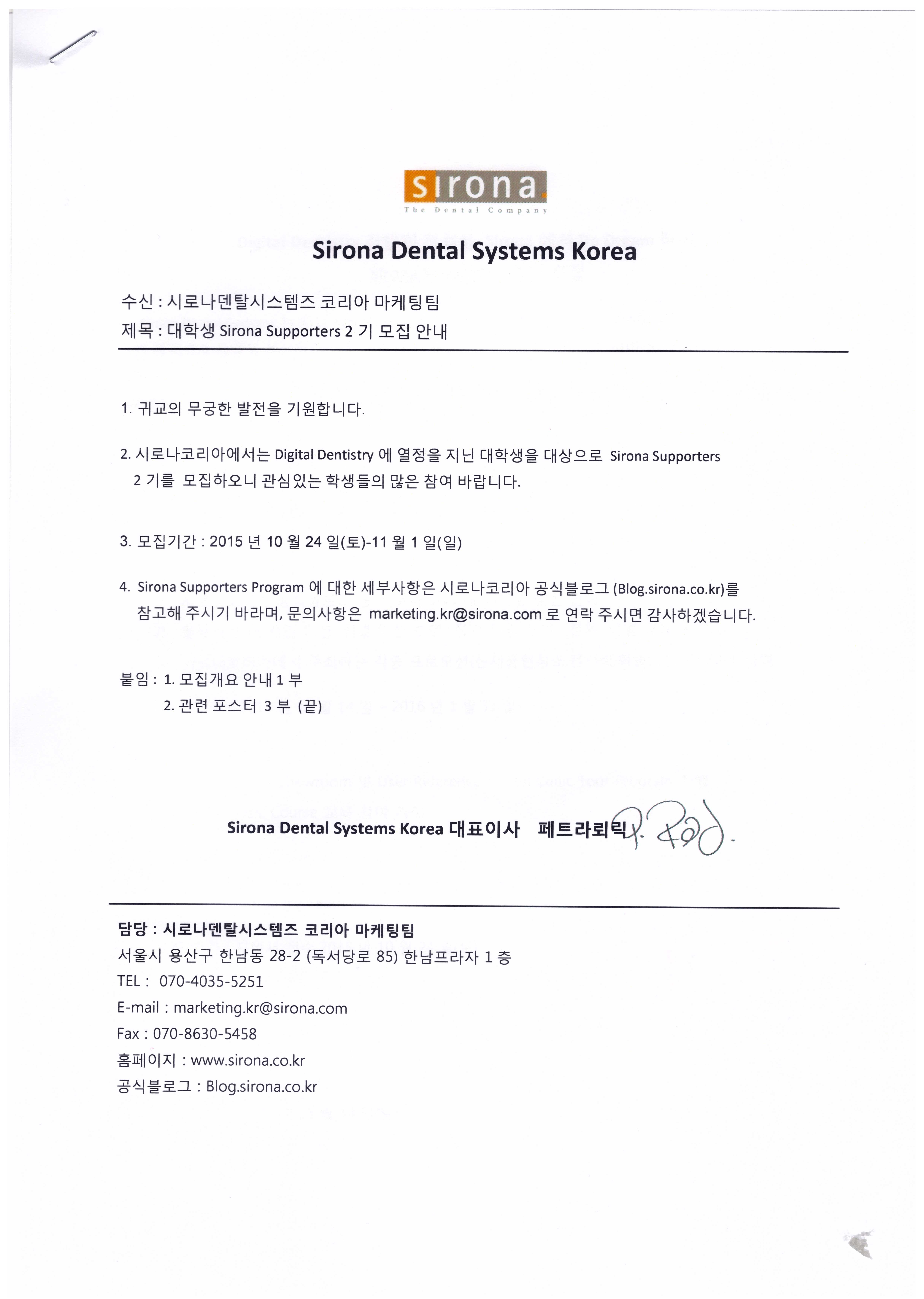 Sirona Dental Systems Korea 대학생 서포터즈 2기 모집 안내
