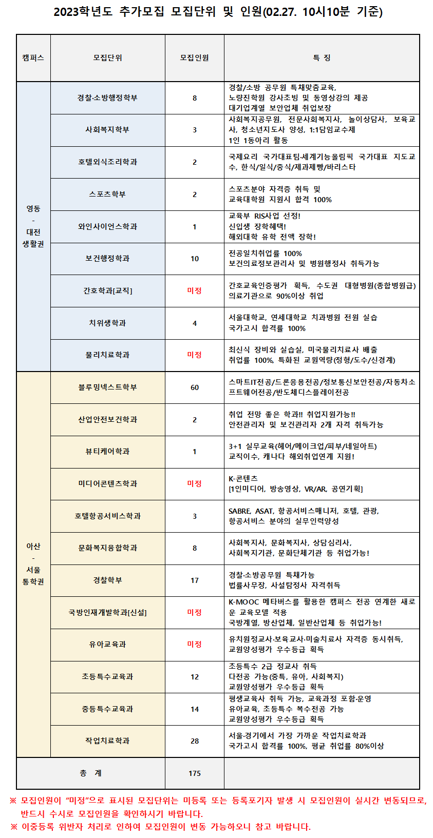 2023학년도 추가모집(6차) 안내